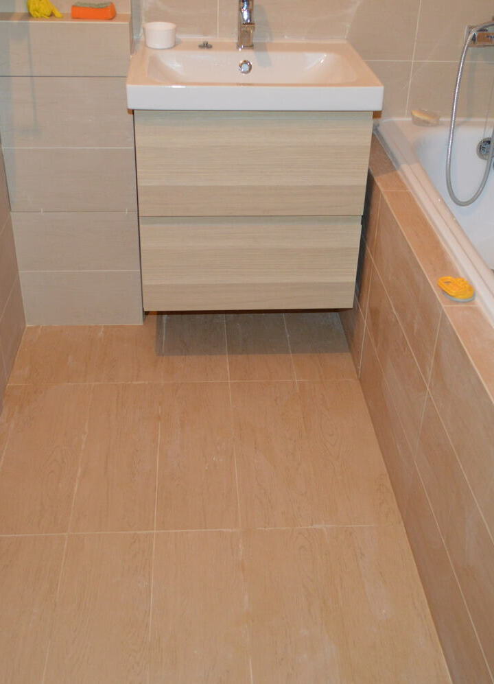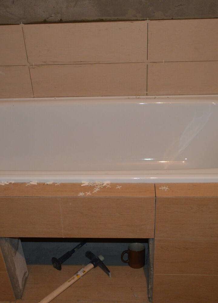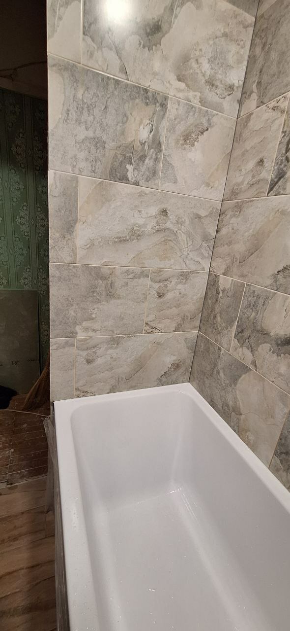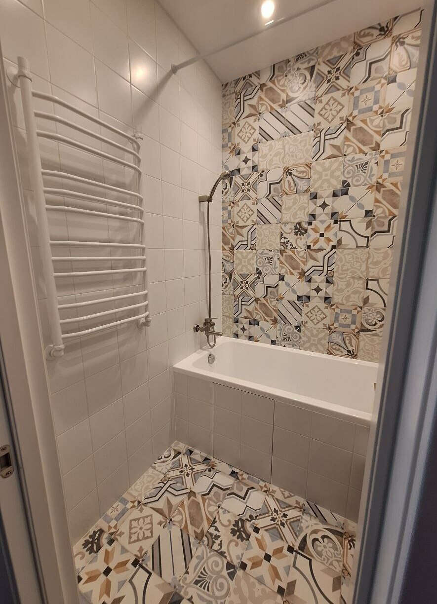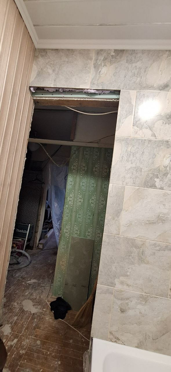 И так подготовим план размещения мебели, сантехники, розеток, выключателей, светильников. Начертим примерную схему раскладки кафельной плитки. Закупим все черновые и чистовые материалы. Доставим и занесём в квартиру. Поштрабим стены в ванной комнате под будущую электропроводку и водопроводные и канализационные трубы, заменим и проложим новые водопроводные и канализационные трубы, оштукатурим стены - выравняем пол и ровно под заточку уложим плитку. Установим и подключим все сантехнические приборы. Вынесем и утилизируем строительный мусор. Уберём помещение.